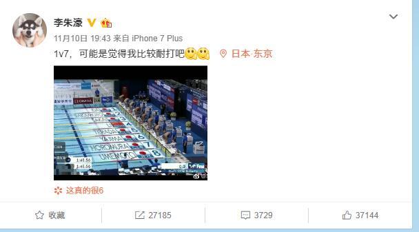 赛后李朱濠在个人微博上表示,“1v7,可能是觉得我比较耐打吧。”对李朱濠的壮举,网友们都彻底佩服了,“哈哈哈哈哈哈哈哈哈哈哈太强了,真的,一人刚七个,能造啊哥!!”、“真抗日英雄了”、“抗日英雄李”、“七个青铜不敌一个王者”。