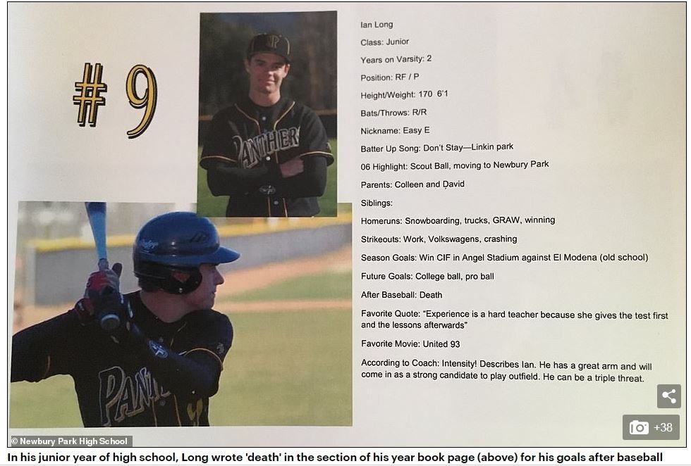 在初中的年鉴上,在棒球以后的人生目标一栏,他写了“死亡”。