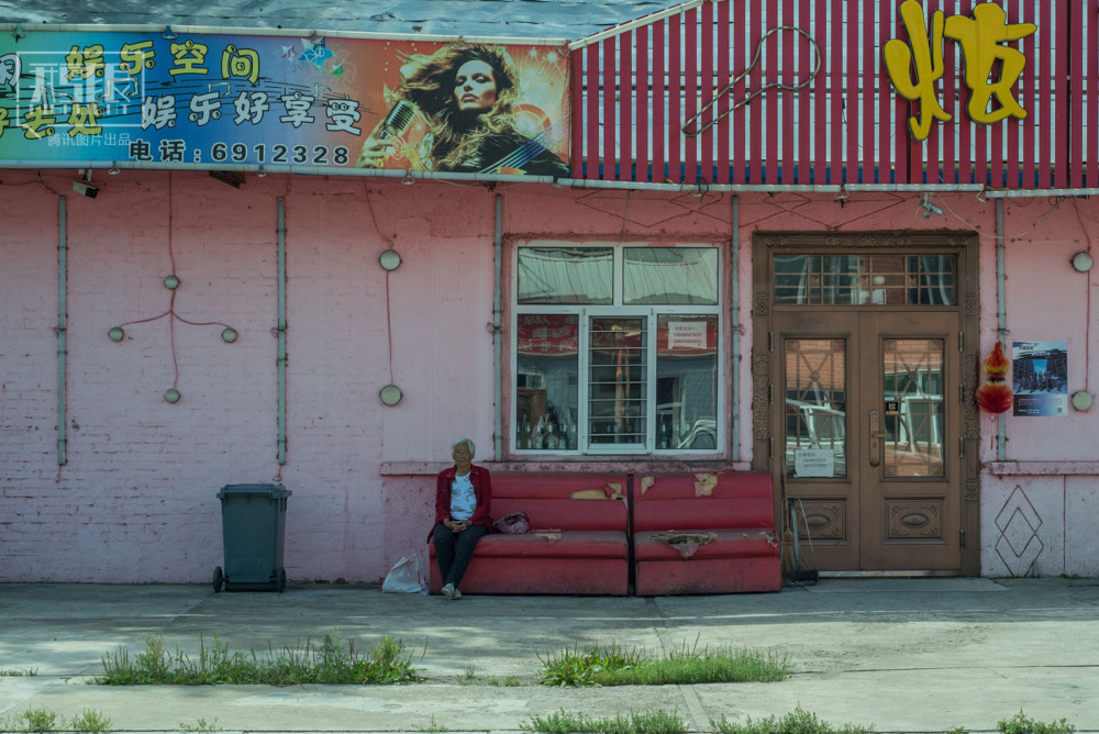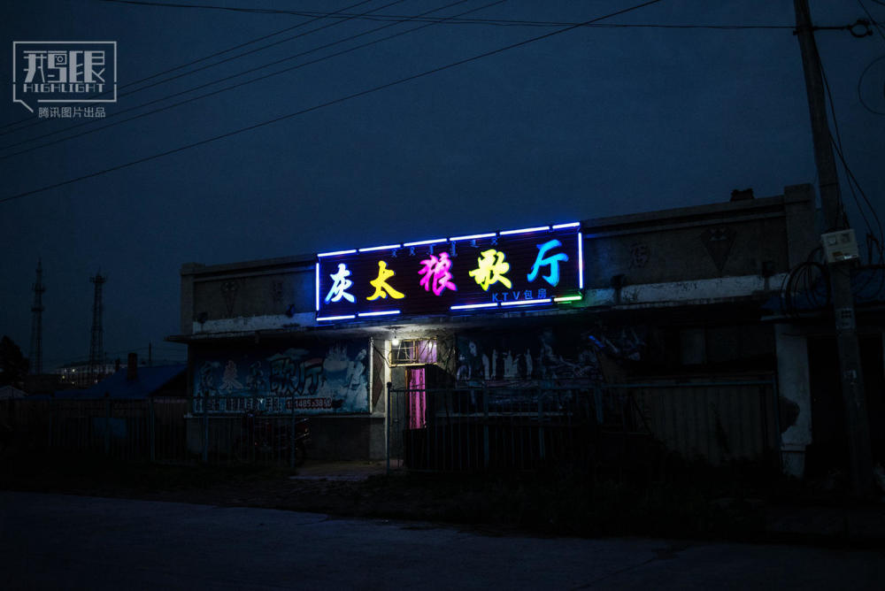 2018年7月23日,内蒙古牙克石市图里河,夜幕之下,只有这家还营业的歌厅泛着点光亮。