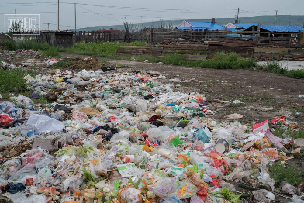 2018年7月24日,内蒙古牙克石市图里河,平房区土路边的垃圾,无人处理发臭。