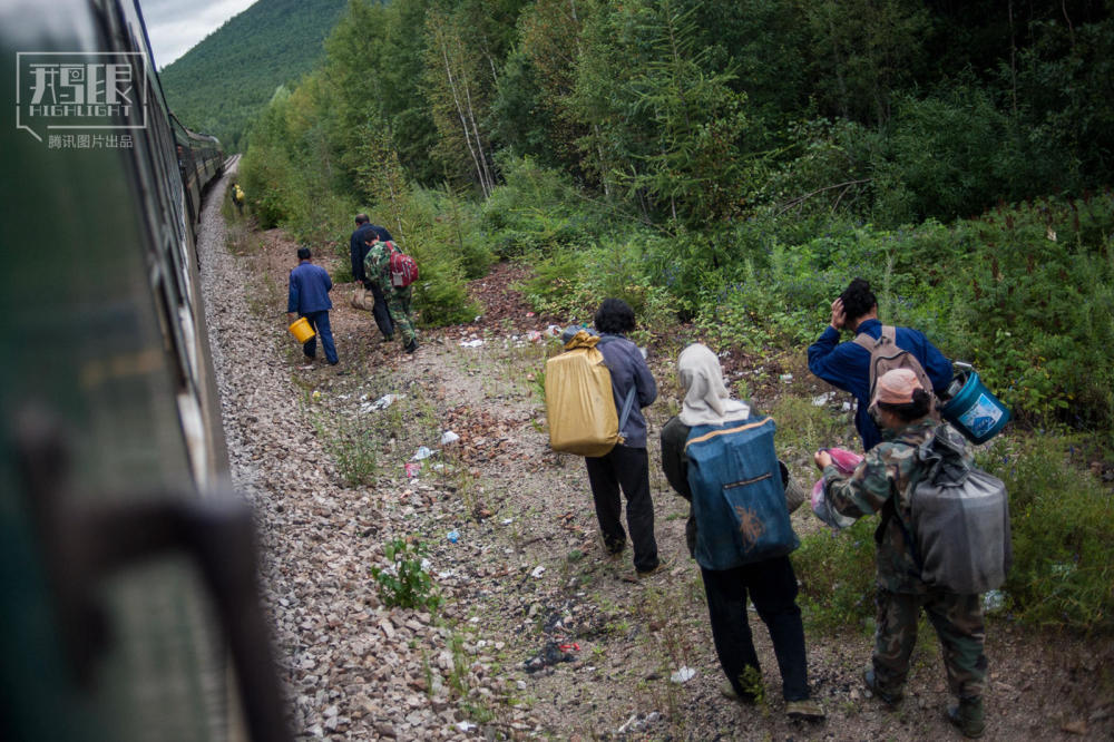 青果采摘期,坐着绿皮车去森林里摘野果,每天会上演,在火车上遇到伊图里河上车去摘蓝莓的,他们说:到站后去林子里摘都柿(当地人管野生蓝莓叫都柿),还得来回走30里地小道,要穿上雨鞋和防水裤子,露水能淋湿到膝盖以上,用撮子(摘蓝莓的工具),生的容易摘,好手一天能摘30斤,收购价7元,做蓝莓饮料酿酒用,熟的能卖17元一斤,难摘,效率低。我说,海拉尔市场看到野生蓝莓要25元一斤,给他们看我拍的照片。他们说,野生的没这么大,没这么整齐,那是种植的,没野生的好吃,骗你们外地人的。