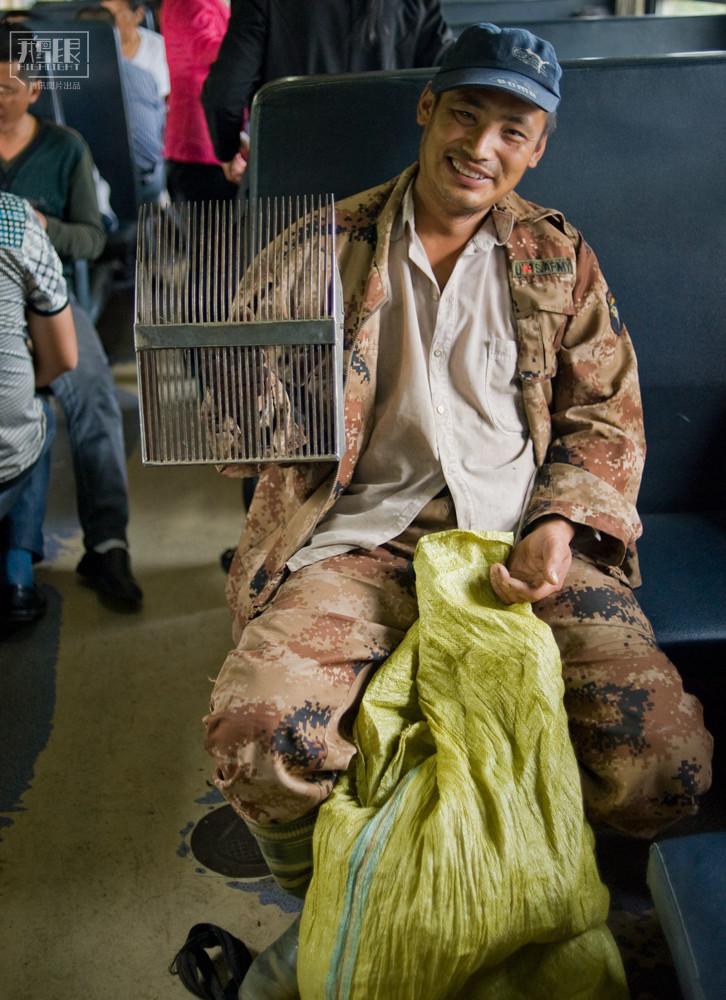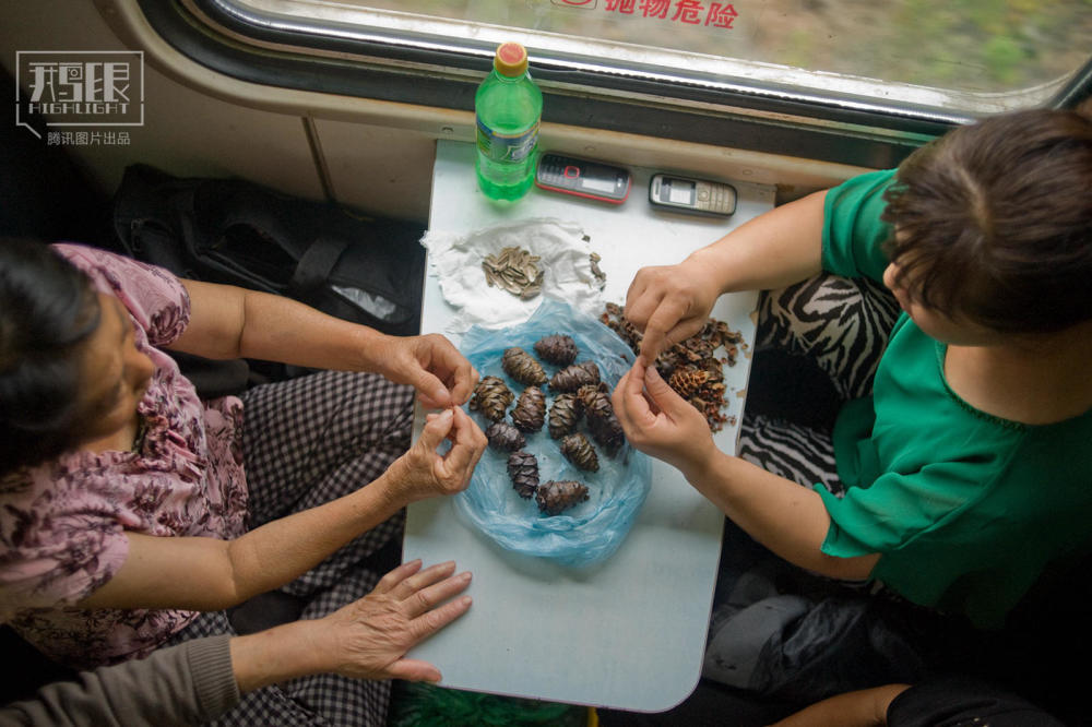 2013年8月12日,6958次绿皮火车上吃松塔的乘客。