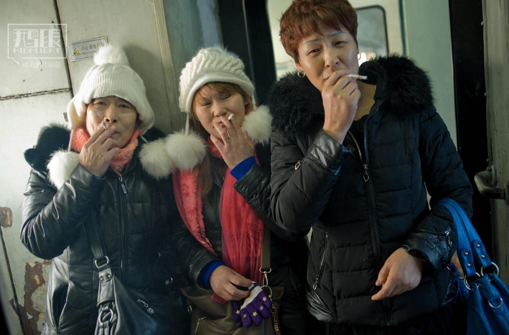 2015年1月30日,黑龙江省漠河县古莲林场至加格达奇6246次绿皮车上的几位女乘客。
