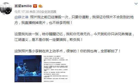 之后,张梁更瘦在微博上曝出李雨桐因为脚上正在做手术的照片来证明出车祸的的确是李雨桐,而不是薛之谦。微博一发出,立刻引起了很大的轰动,因为有了第三个人的说辞,有很多网友都逐渐开始选择相信李雨桐了。