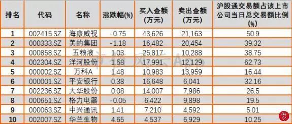 三、昨日沪股通、深股通成交额前十