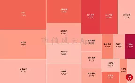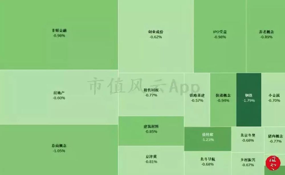 (方块大小由成交额决定,颜色深浅由涨跌幅度决定)
