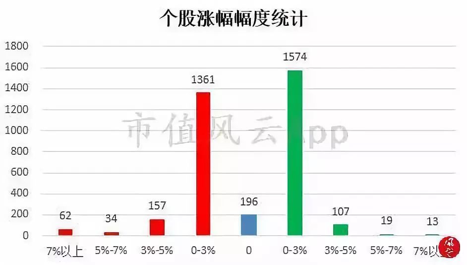 截至今日收盘,共有1614只个股上涨,占全部正常交易股票的45.81%。共有1713只个股下跌,占全部正常交易股票的48.62%。