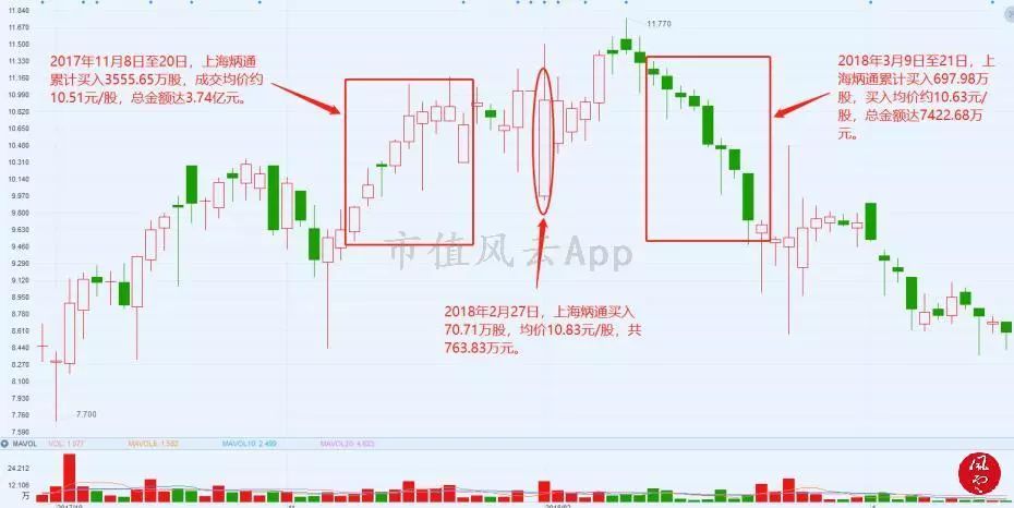 从上图可以得知,从2017年11月8日至2018年3月21日,上海炳通总共买入4351.92万股,前后两次密集买入绿庭投资股份的成交均价约为10.51元/股和10.63元/股,合计成交金额达4.5亿元。