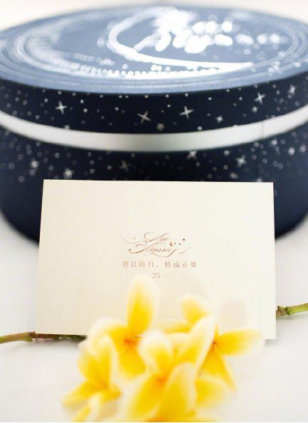 24日,两人的请帖以及礼盒也曝光。浪漫唯美的设计,还有两人的剪影。“贾以时日,修成正果”几个字将两人的姓都包含在里面,表达了他们对彼此的爱。随处可见的甜蜜细节也让网友羡慕和祝福。