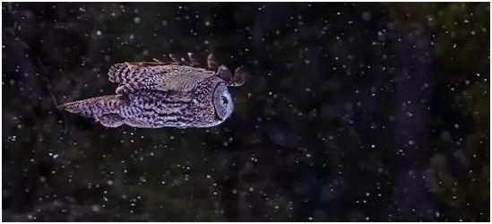 这张照片是我在2016年2月在加拿大班夫一片低矮的树丛里拍到的,当时已近傍晚,大雪纷飞。照片背景很黑色很魔幻,这只灰林鸮那一刻刚好把翅膀收起来在空中滑翔,双目有神,姿态奇特,灰林鸮在《哈里波特》里是魔法世界传递消息的信使,我当时按下快门后回看照片就有一种强烈的感觉,它就是那个信使,魔法世界有大事发生,它有一封非常重要的信要尽快送给哈里波特,虽然昏天暗地,漫天大雪,它非常努力,历尽艰辛,日夜兼程,最终不辱使命。这个故事如何?我自己都被打动了,可能评委也被这个故事打动了,最终这张照片获得了《美国国家地理》2016年全球摄影比赛中国区自然类的二等奖。