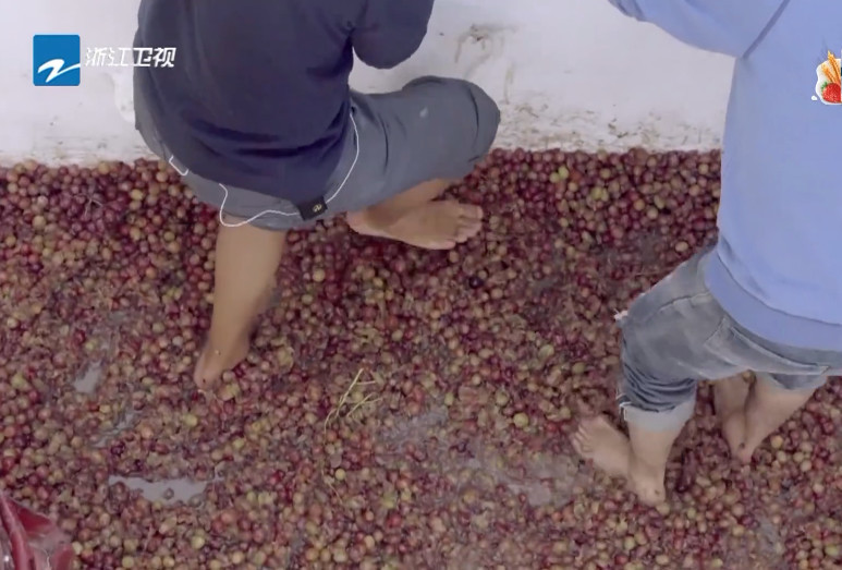 在希腊有古老的传统,当地人喜欢用脚踩葡萄汁引用,因为他们觉得用机器压会压出葡萄籽的苦味。而谢霆锋和吴彦祖两人,在习俗的吸引下也愿意尝试赤脚踩葡萄汁。