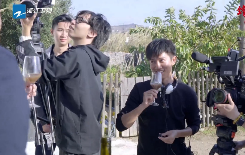 吴彦祖和谢霆锋两个人喝完,开启了一整套的“坑人”游戏。拿着一整瓶的脚酿葡萄汁,轮番让节目组的人喝,首先拿导演“开刀”。导演一看就苦不堪言,但又不能不喝,只好闭眼一饮而尽。。。