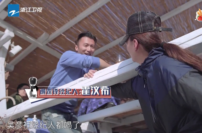 眼看吴彦祖让自己经纪人喝,谢霆锋也是拉着自己的经纪人霍汶希,让她品尝喝一杯。而霍汶希的表现更激烈,满脸的抗拒甚至都苦笑这逃到亭子下面去,坚决不要喝。最后,谢霆锋说人家吴彦祖经纪人都喝了时,霍汶希才勉强答应喝一小口。。。。