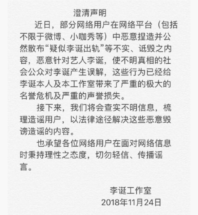 视频发出后李诞迅速上了微博热搜,很多网友都对李诞疑似出轨的行为表示失望和鄙视。但李诞工作室很快做出回应,否认李诞出轨并指责这是造谣,称将以法律途径处理造谣内容。