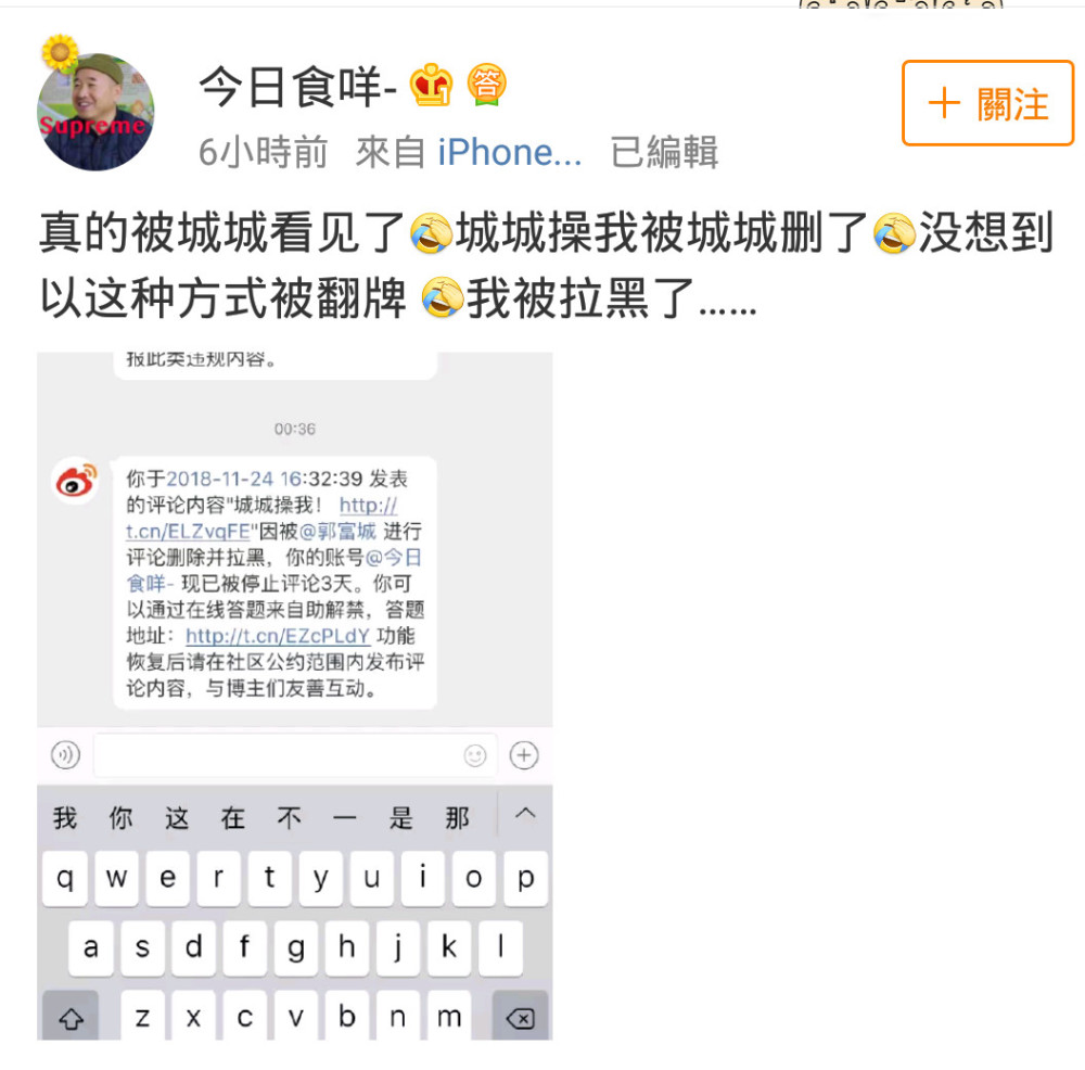 11月25日,郭富城的一名粉丝发了一条微博称被郭富城拉黑了,网友们听后都感到十分好奇,纷纷跑去看是什么内容引得偶像本尊亲自拉黑,不过粉丝们看后都表示笑掉了牙。原来该粉丝在郭富城的微博下面评论了一句尺度比较大的话语,他评论“城城X我”,这样一看被拉黑也就不足为奇了。