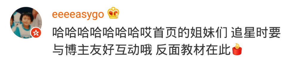 不过也有很多网友看后都哈哈大笑,表示:“楼主你何必呢”,“这样未必是件坏事,起码他也算是认识你了,说不定他看了你的首页”,“哈哈哈哈哈哈哈哎首页的姐妹们 追星时要与博主友好互动哦 反面教材在此”。