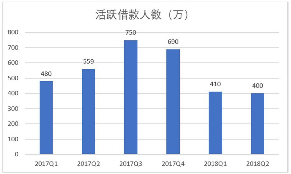 对于现金贷平台而言,活跃借款人数量至关重要。在最新的季报中,趣店没有公布第三季度活跃借款人数量,只提到三季度新增了58万活跃借款人。根据第二季度财报数据,当时趣店活跃借款人数为400万,即便没有用户流失,第三季度活跃借款人数也仅有458万,与去年同期的750万人不可同日而语。