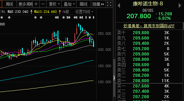 首先,康希诺最近在港股的表现较为低迷,而且有走出下行趋势的意味。