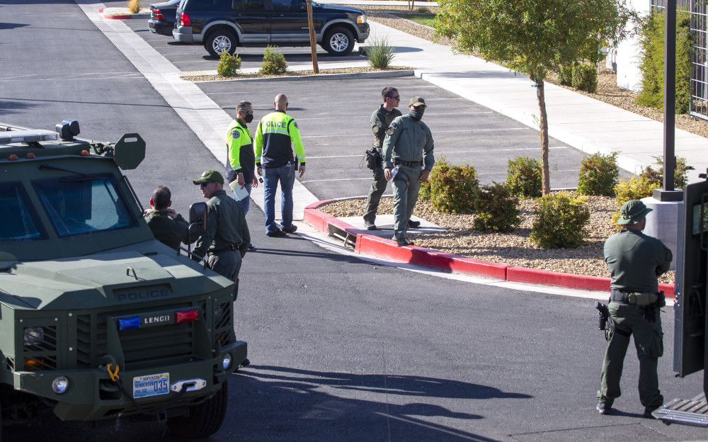 据拉斯维加斯电视台KVVU报道,亨德森(Henderson)距拉斯维加斯15英里,当地警方正在调查一起发生在公寓里的枪击案,在案发时,至少有一名警察参与。据亨德森警察局称,2日早上,警察接到了枪击报警电话,称Stonelake Cove 1445号发生枪击事件,该处位于一栋公寓楼内。警长贾森·库兹克(Jason Kuzik)表示,警官们是在接到可能发生枪击的电话后赶到现场的,当时有一名受害者在门口受了枪伤。